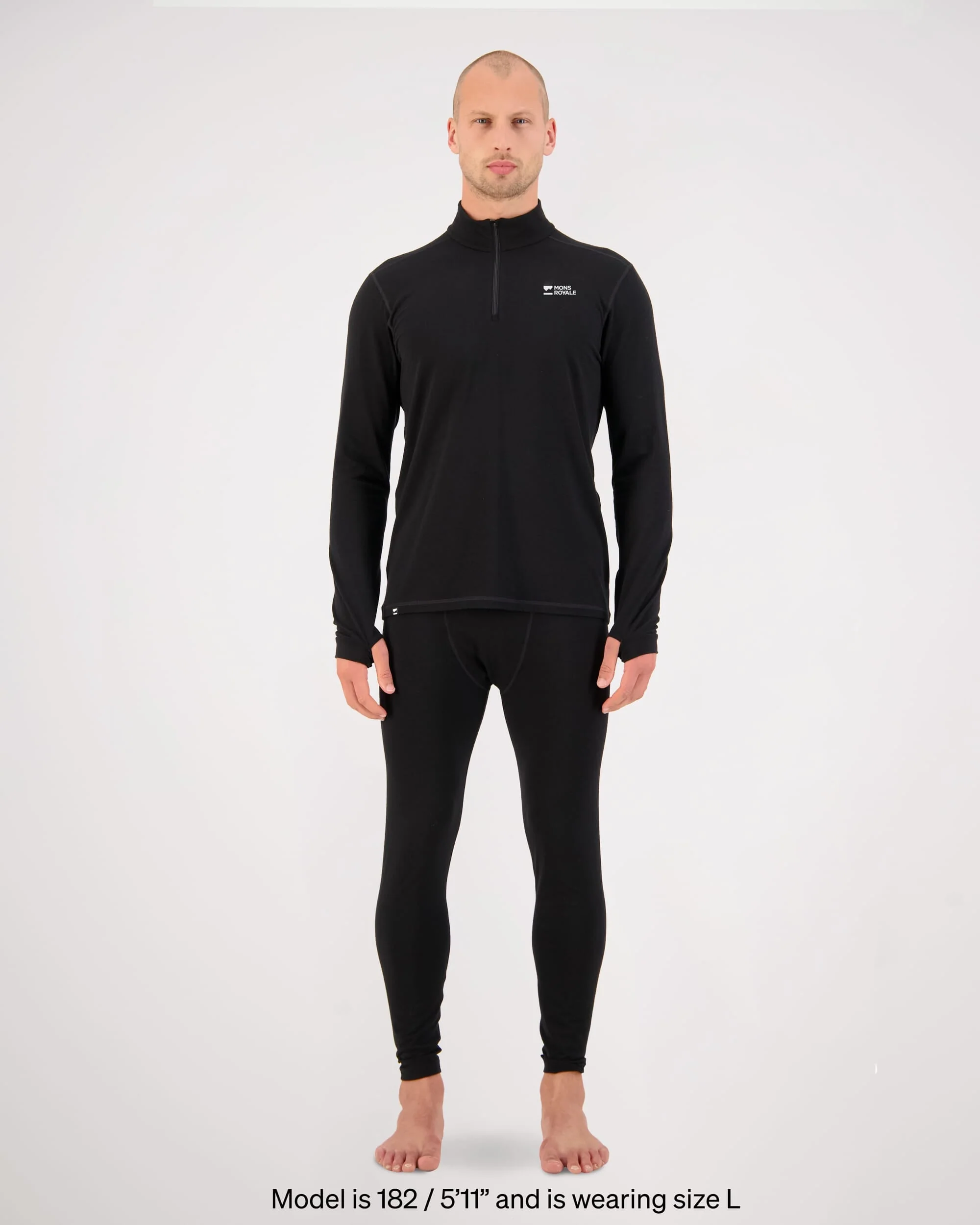 Cascade Merino Base Layer 1/4 Zip Long Sleeve - Black | Men's Long Sleeve Top